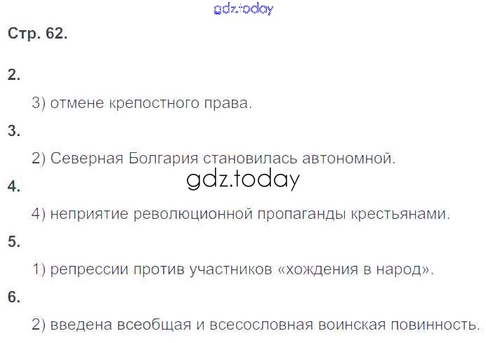 На страницах сайта gdz.today вы найдете учебный и вспомогательный материал, направленный на улучшения знаний школьной программы. ГДЗ - онлайн мир знаний Страницы (решение) 62 Рабочей тетради по Истории России для 9 класса Гевуркова Экзамен УМК 2019
