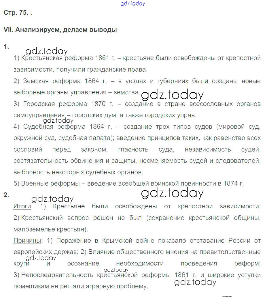 На страницах сайта gdz.today вы найдете учебный и вспомогательный материал, направленный на улучшения знаний школьной программы. ГДЗ - онлайн мир знаний Страницы (решение) 75 Рабочей тетради по Истории России для 9 класса Гевуркова Экзамен УМК 2019