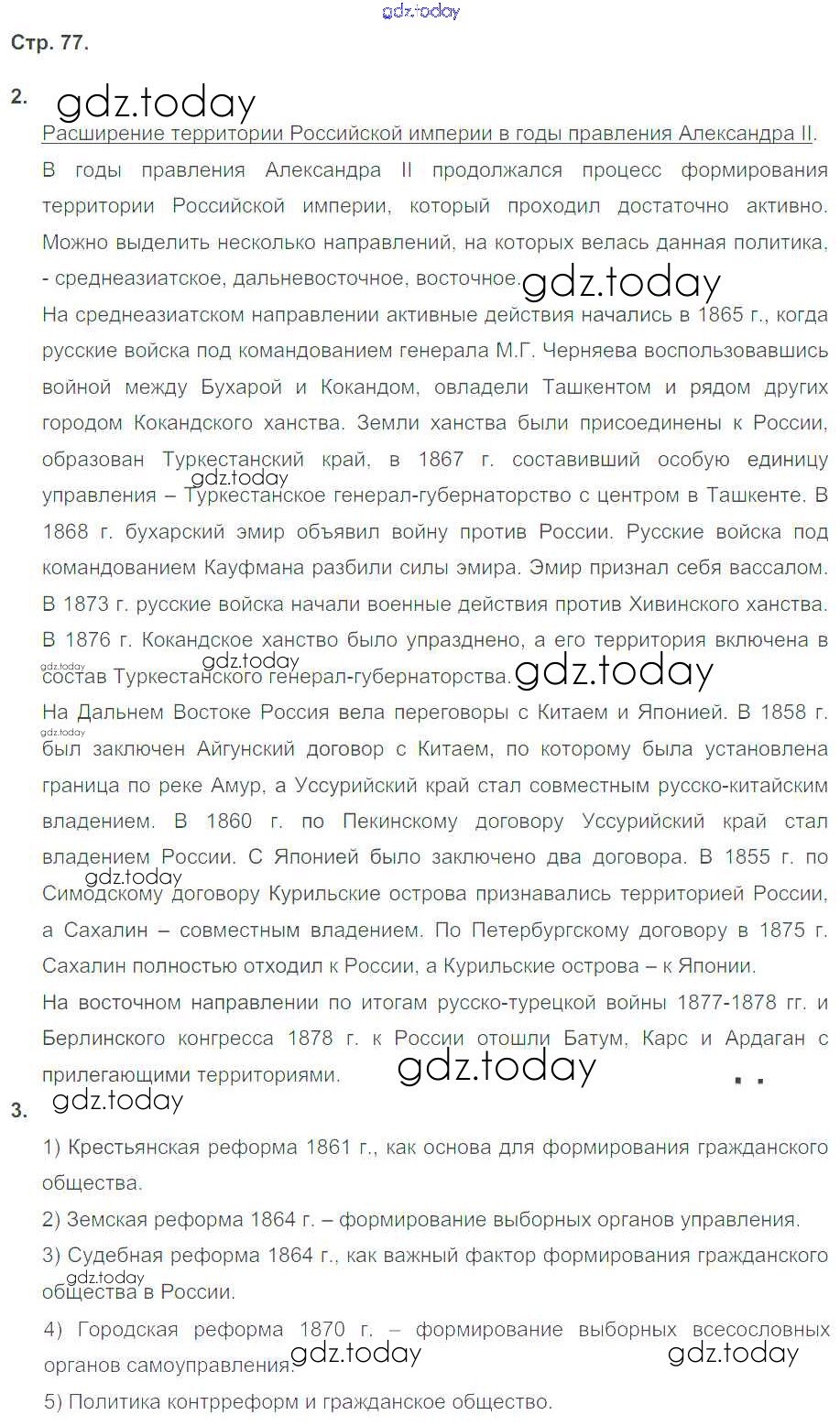 На страницах сайта gdz.today вы найдете учебный и вспомогательный материал, направленный на улучшения знаний школьной программы. ГДЗ - онлайн мир знаний Страницы (решение) 77 Рабочей тетради по Истории России для 9 класса Гевуркова Экзамен УМК 2019