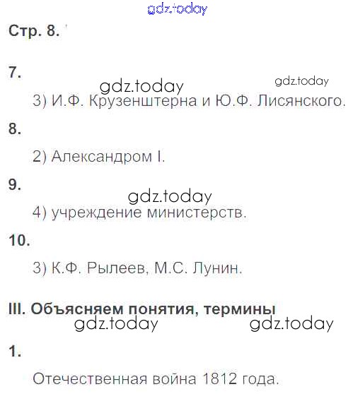 На страницах сайта gdz.today вы найдете учебный и вспомогательный материал, направленный на улучшения знаний школьной программы. ГДЗ - онлайн мир знаний Страницы (решение) 8 Рабочей тетради по Истории России для 9 класса Гевуркова Экзамен УМК 2019