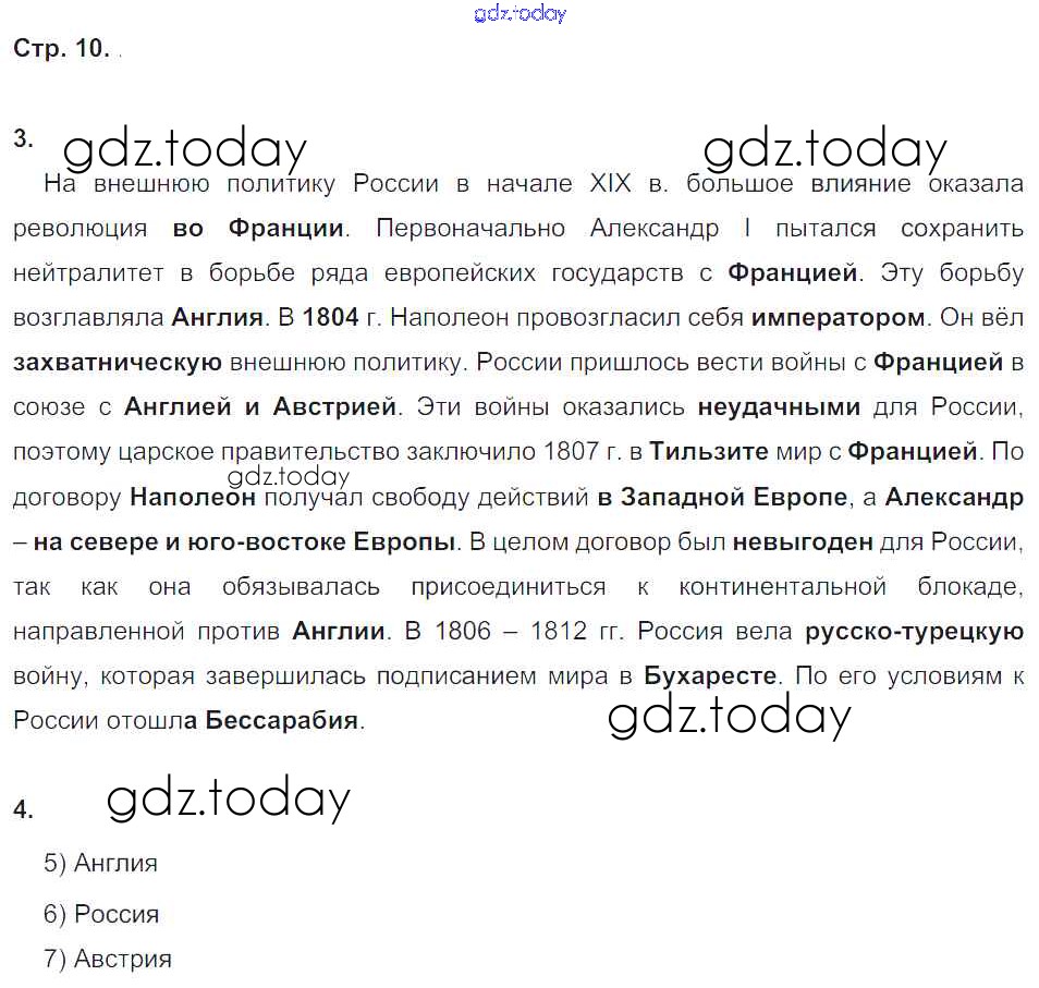 На страницах сайта gdz.today вы найдете учебный и вспомогательный материал, направленный на улучшения знаний школьной программы. ГДЗ - онлайн мир знаний Страницы (решение) 10 Рабочей тетради по Истории России для 9 класса Симонова, Клоков Дрофа Вертикаль 2017