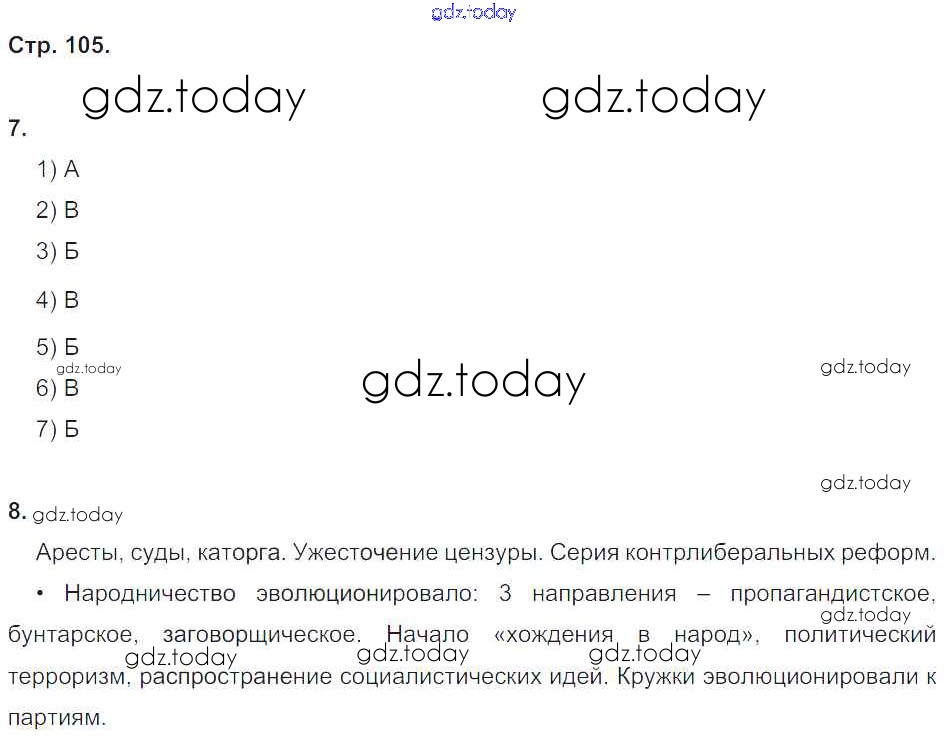 На страницах сайта gdz.today вы найдете учебный и вспомогательный материал, направленный на улучшения знаний школьной программы. ГДЗ - онлайн мир знаний Страницы (решение) 105 Рабочей тетради по Истории России для 9 класса Симонова, Клоков Дрофа Вертикаль 2017