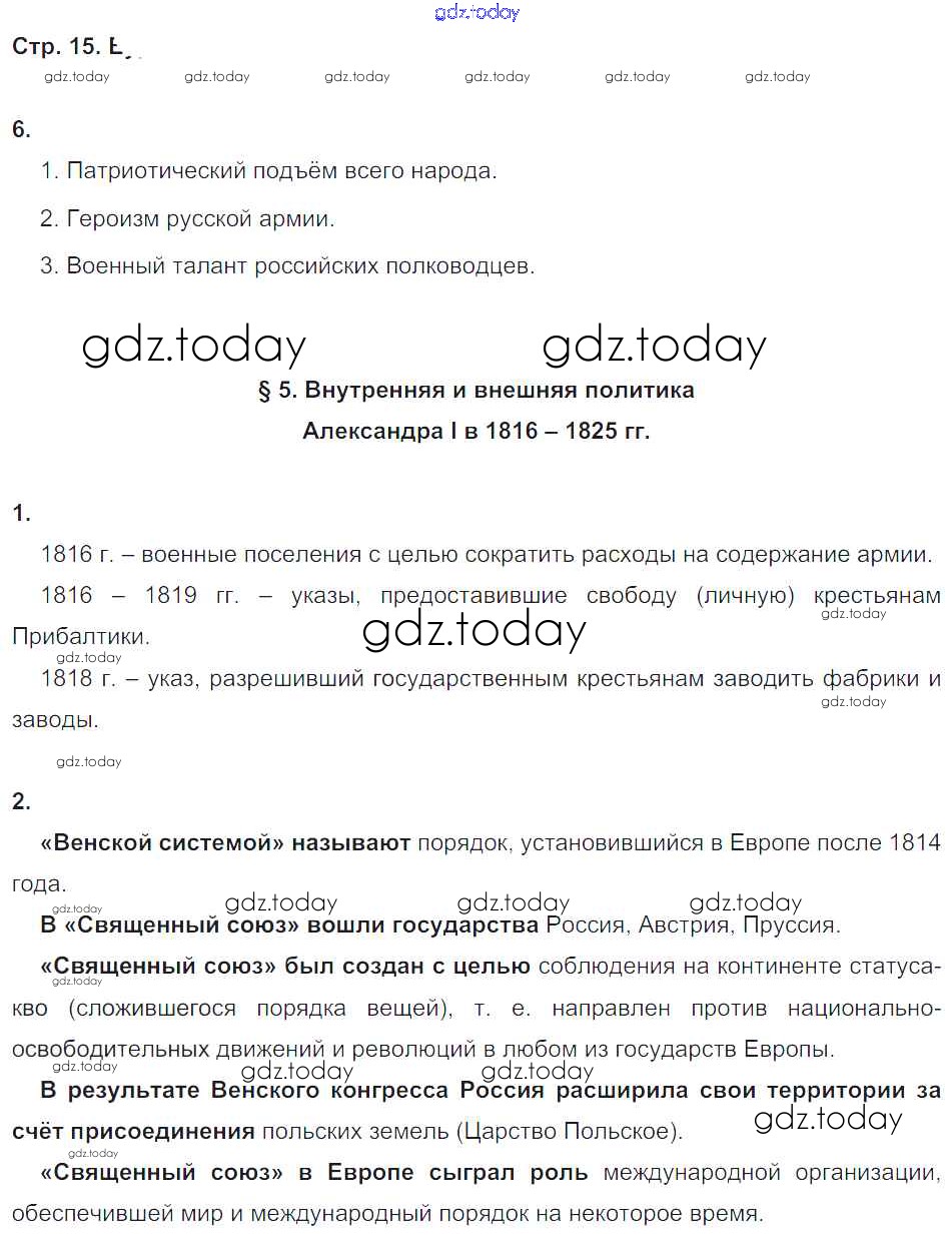 На страницах сайта gdz.today вы найдете учебный и вспомогательный материал, направленный на улучшения знаний школьной программы. ГДЗ - онлайн мир знаний Страницы (решение) 15 Рабочей тетради по Истории России для 9 класса Симонова, Клоков Дрофа Вертикаль 2017