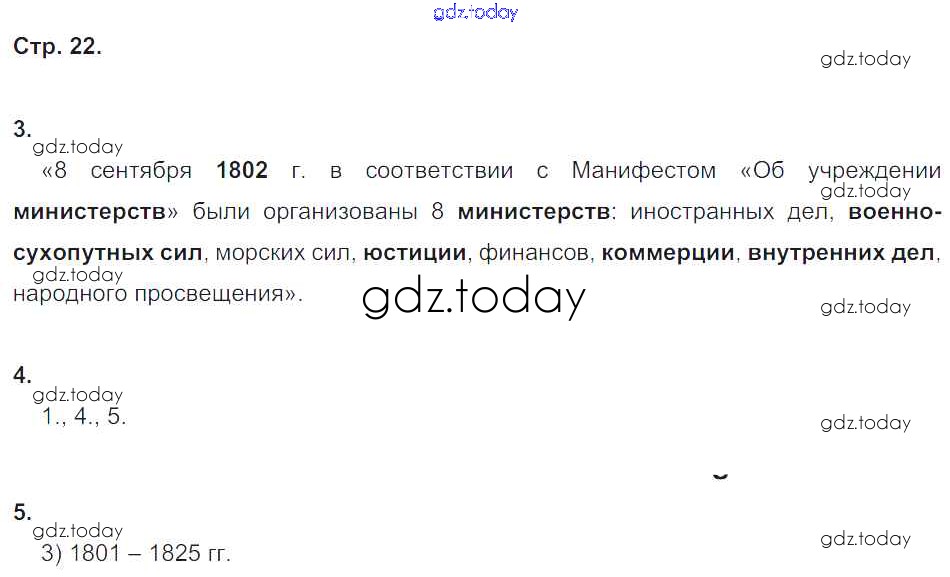 На страницах сайта gdz.today вы найдете учебный и вспомогательный материал, направленный на улучшения знаний школьной программы. ГДЗ - онлайн мир знаний Страницы (решение) 22 Рабочей тетради по Истории России для 9 класса Симонова, Клоков Дрофа Вертикаль 2017