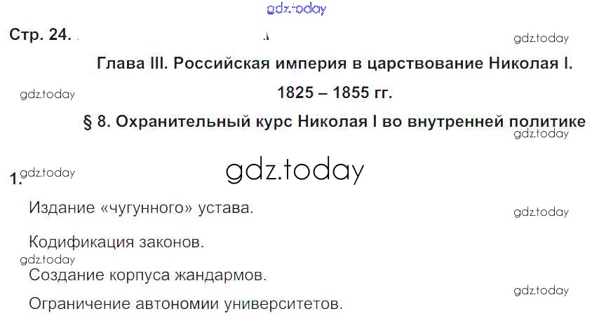 На страницах сайта gdz.today вы найдете учебный и вспомогательный материал, направленный на улучшения знаний школьной программы. ГДЗ - онлайн мир знаний Страницы (решение) 24 Рабочей тетради по Истории России для 9 класса Симонова, Клоков Дрофа Вертикаль 2017
