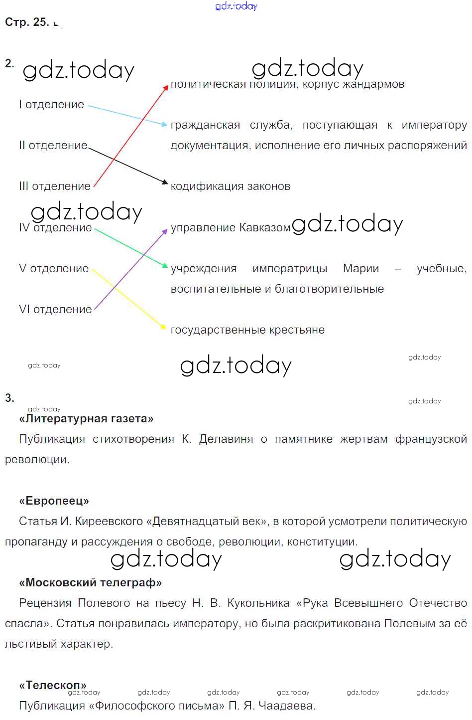 На страницах сайта gdz.today вы найдете учебный и вспомогательный материал, направленный на улучшения знаний школьной программы. ГДЗ - онлайн мир знаний Страницы (решение) 25 Рабочей тетради по Истории России для 9 класса Симонова, Клоков Дрофа Вертикаль 2017