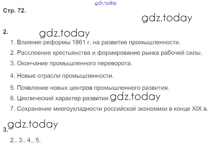 На страницах сайта gdz.today вы найдете учебный и вспомогательный материал, направленный на улучшения знаний школьной программы. ГДЗ - онлайн мир знаний Страницы (решение) 72 Рабочей тетради по Истории России для 9 класса Симонова, Клоков Дрофа Вертикаль 2017