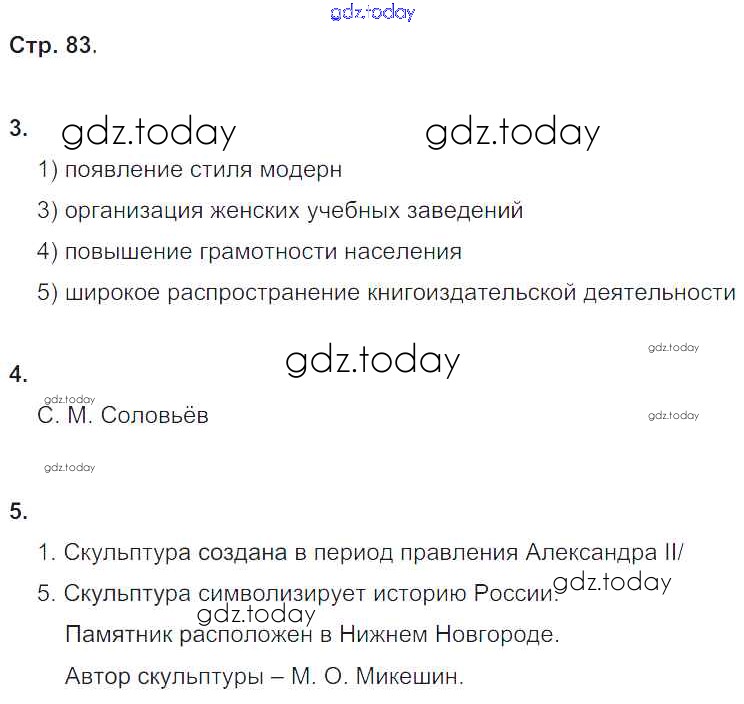 На страницах сайта gdz.today вы найдете учебный и вспомогательный материал, направленный на улучшения знаний школьной программы. ГДЗ - онлайн мир знаний Страницы (решение) 83 Рабочей тетради по Истории России для 9 класса Симонова, Клоков Дрофа Вертикаль 2017