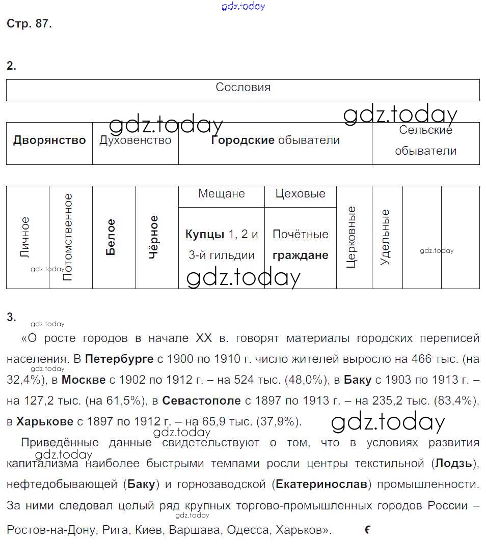 На страницах сайта gdz.today вы найдете учебный и вспомогательный материал, направленный на улучшения знаний школьной программы. ГДЗ - онлайн мир знаний Страницы (решение) 87 Рабочей тетради по Истории России для 9 класса Симонова, Клоков Дрофа Вертикаль 2017