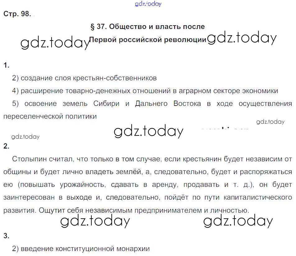 На страницах сайта gdz.today вы найдете учебный и вспомогательный материал, направленный на улучшения знаний школьной программы. ГДЗ - онлайн мир знаний Страницы (решение) 98 Рабочей тетради по Истории России для 9 класса Симонова, Клоков Дрофа Вертикаль 2017