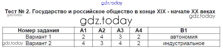 На страницах сайта gdz.today вы найдете учебный и вспомогательный материал, направленный на улучшения знаний школьной программы. ГДЗ - онлайн мир знаний Решение к тестам 2 Контрольно-измерительным материалам (КИМ) по Истории России для 9 класса Волкова ВАКО 2017