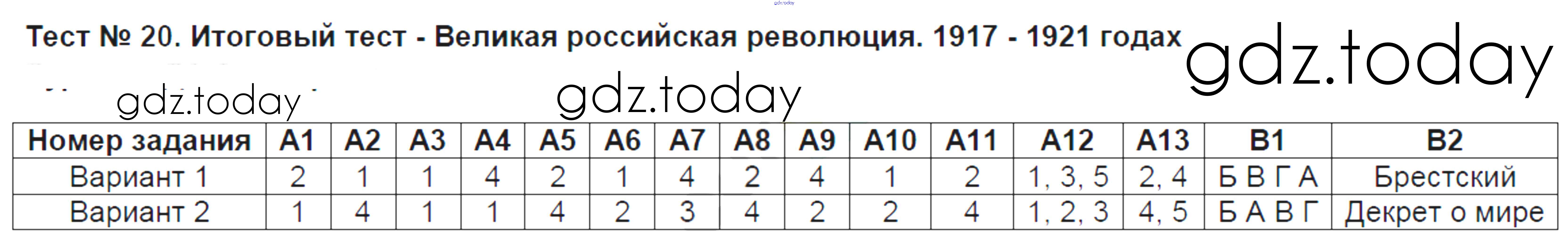 На страницах сайта gdz.today вы найдете учебный и вспомогательный материал, направленный на улучшения знаний школьной программы. ГДЗ - онлайн мир знаний Решение к тестам 20 Контрольно-измерительным материалам (КИМ) по Истории России для 9 класса Волкова ВАКО 2017