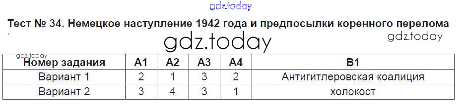 На страницах сайта gdz.today вы найдете учебный и вспомогательный материал, направленный на улучшения знаний школьной программы. ГДЗ - онлайн мир знаний Решение к тестам 34 Контрольно-измерительным материалам (КИМ) по Истории России для 9 класса Волкова ВАКО 2017