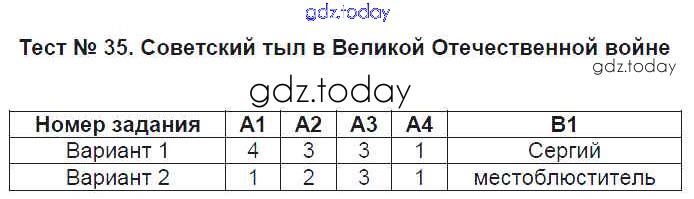 На страницах сайта gdz.today вы найдете учебный и вспомогательный материал, направленный на улучшения знаний школьной программы. ГДЗ - онлайн мир знаний Решение к тестам 35 Контрольно-измерительным материалам (КИМ) по Истории России для 9 класса Волкова ВАКО 2017
