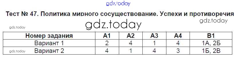 На страницах сайта gdz.today вы найдете учебный и вспомогательный материал, направленный на улучшения знаний школьной программы. ГДЗ - онлайн мир знаний Решение к тестам 47 Контрольно-измерительным материалам (КИМ) по Истории России для 9 класса Волкова ВАКО 2017