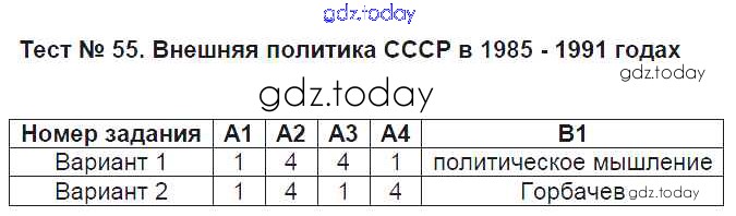 На страницах сайта gdz.today вы найдете учебный и вспомогательный материал, направленный на улучшения знаний школьной программы. ГДЗ - онлайн мир знаний Решение к тестам 55 Контрольно-измерительным материалам (КИМ) по Истории России для 9 класса Волкова ВАКО 2017