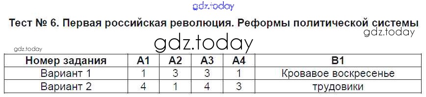 На страницах сайта gdz.today вы найдете учебный и вспомогательный материал, направленный на улучшения знаний школьной программы. ГДЗ - онлайн мир знаний Решение к тестам 6 Контрольно-измерительным материалам (КИМ) по Истории России для 9 класса Волкова ВАКО 2017