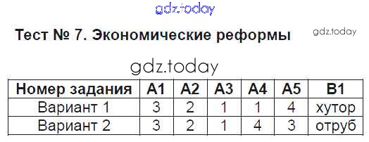 Ответы к Решение к тестам 7 Контрольно-измерительным материалам (КИМ) по Истории России для 9 класса Волкова ВАКО 2017