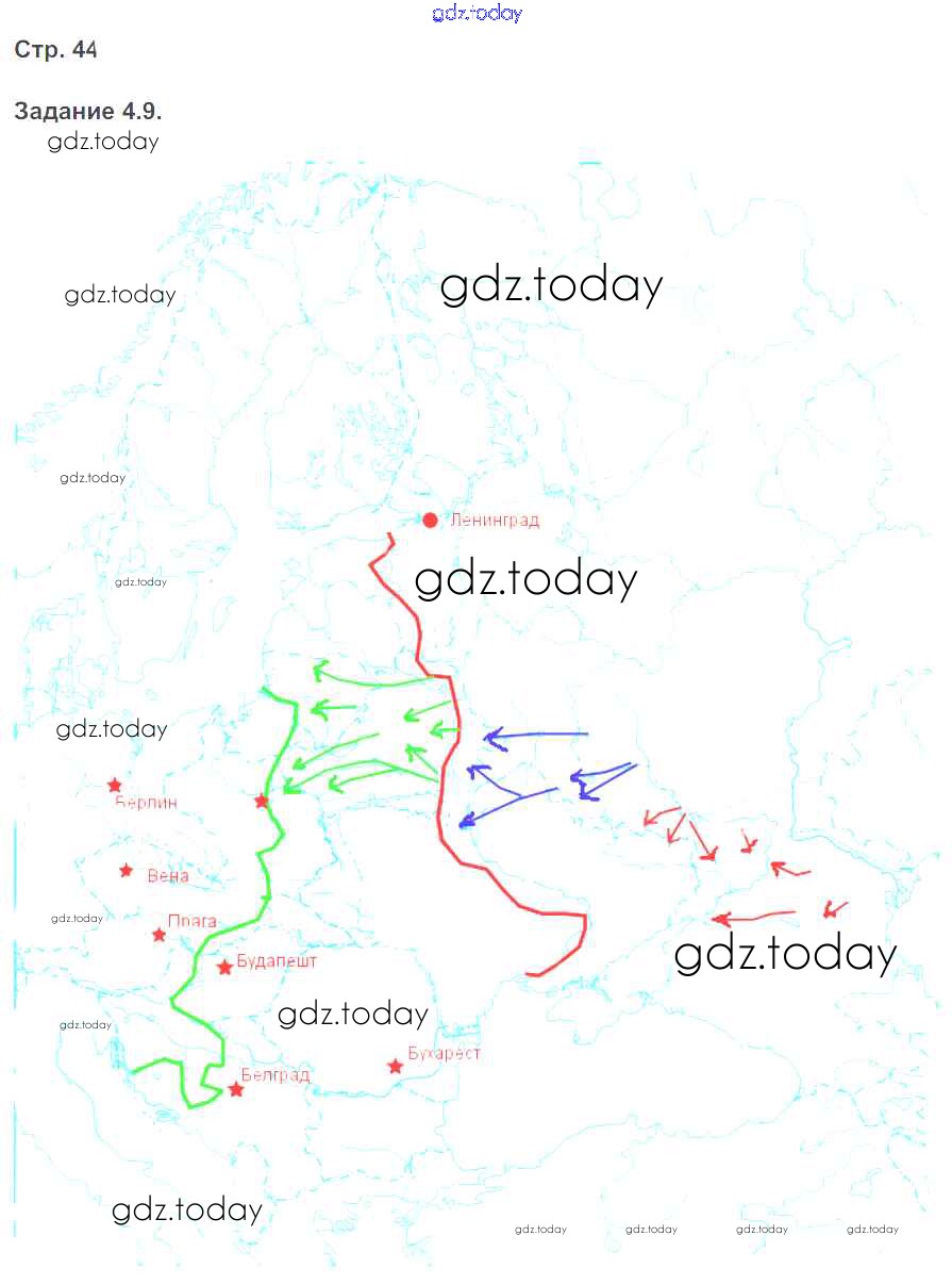 На страницах сайта gdz.today вы найдете учебный и вспомогательный материал, направленный на улучшения знаний школьной программы. ГДЗ - онлайн мир знаний Страницы (решение) 44 Рабочей тетради с контурными картами по Истории России для 9 класса Симонова Экзамен УМК 2014
