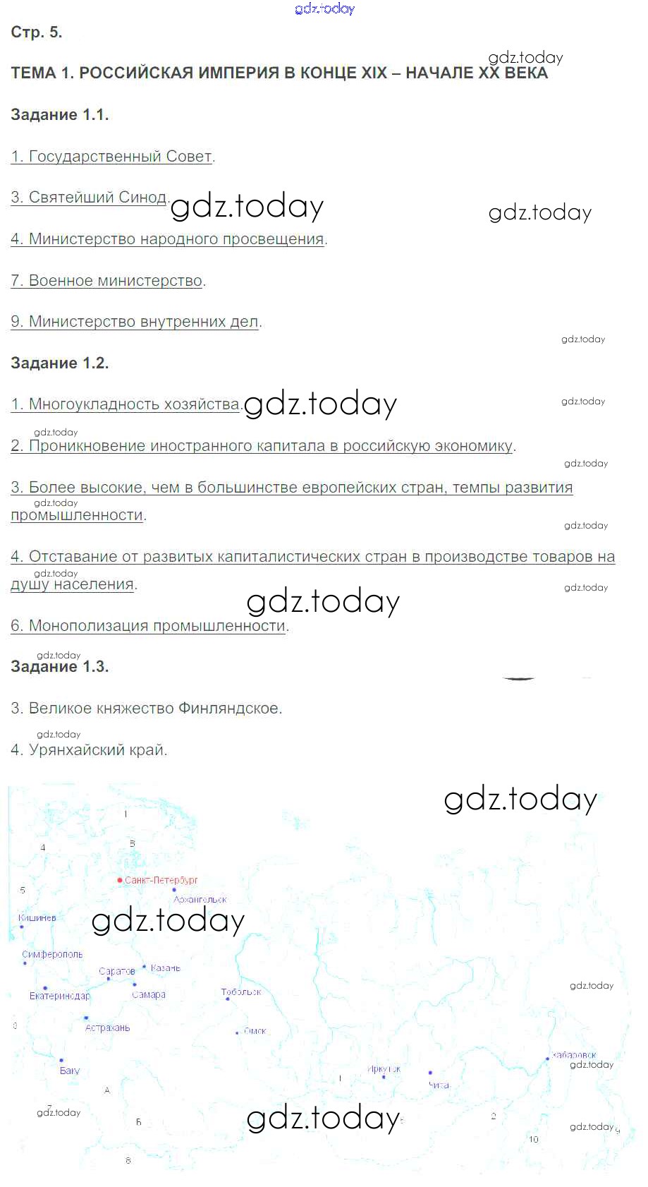 На страницах сайта gdz.today вы найдете учебный и вспомогательный материал, направленный на улучшения знаний школьной программы. ГДЗ - онлайн мир знаний Страницы (решение) 5 Рабочей тетради с контурными картами по Истории России для 9 класса Симонова Экзамен УМК 2014