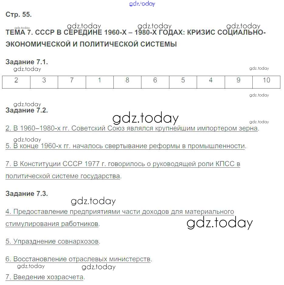 На страницах сайта gdz.today вы найдете учебный и вспомогательный материал, направленный на улучшения знаний школьной программы. ГДЗ - онлайн мир знаний Страницы (решение) 55 Рабочей тетради с контурными картами по Истории России для 9 класса Симонова Экзамен УМК 2014