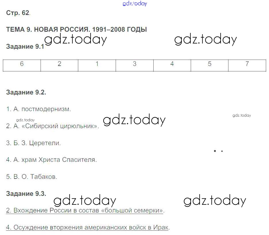 На страницах сайта gdz.today вы найдете учебный и вспомогательный материал, направленный на улучшения знаний школьной программы. ГДЗ - онлайн мир знаний Страницы (решение) 62 Рабочей тетради с контурными картами по Истории России для 9 класса Симонова Экзамен УМК 2014