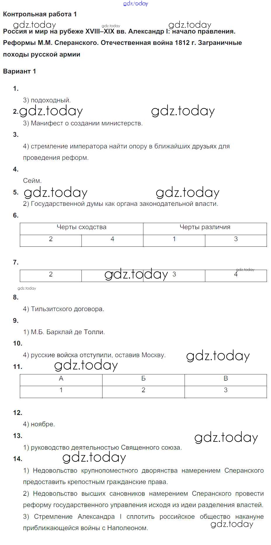 На страницах сайта gdz.today вы найдете учебный и вспомогательный материал, направленный на улучшения знаний школьной программы. ГДЗ - онлайн мир знаний Решение к контрольной работе 1. Варианты 1 Контрольным работам по Истории России для 9 класса Соловьев Экзамен УМК 2020