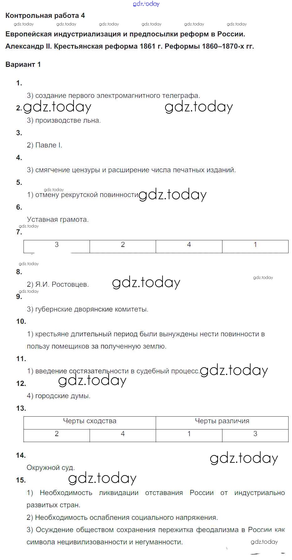На страницах сайта gdz.today вы найдете учебный и вспомогательный материал, направленный на улучшения знаний школьной программы. ГДЗ - онлайн мир знаний Решение к контрольной работе 4. Варианты 1 Контрольным работам по Истории России для 9 класса Соловьев Экзамен УМК 2020