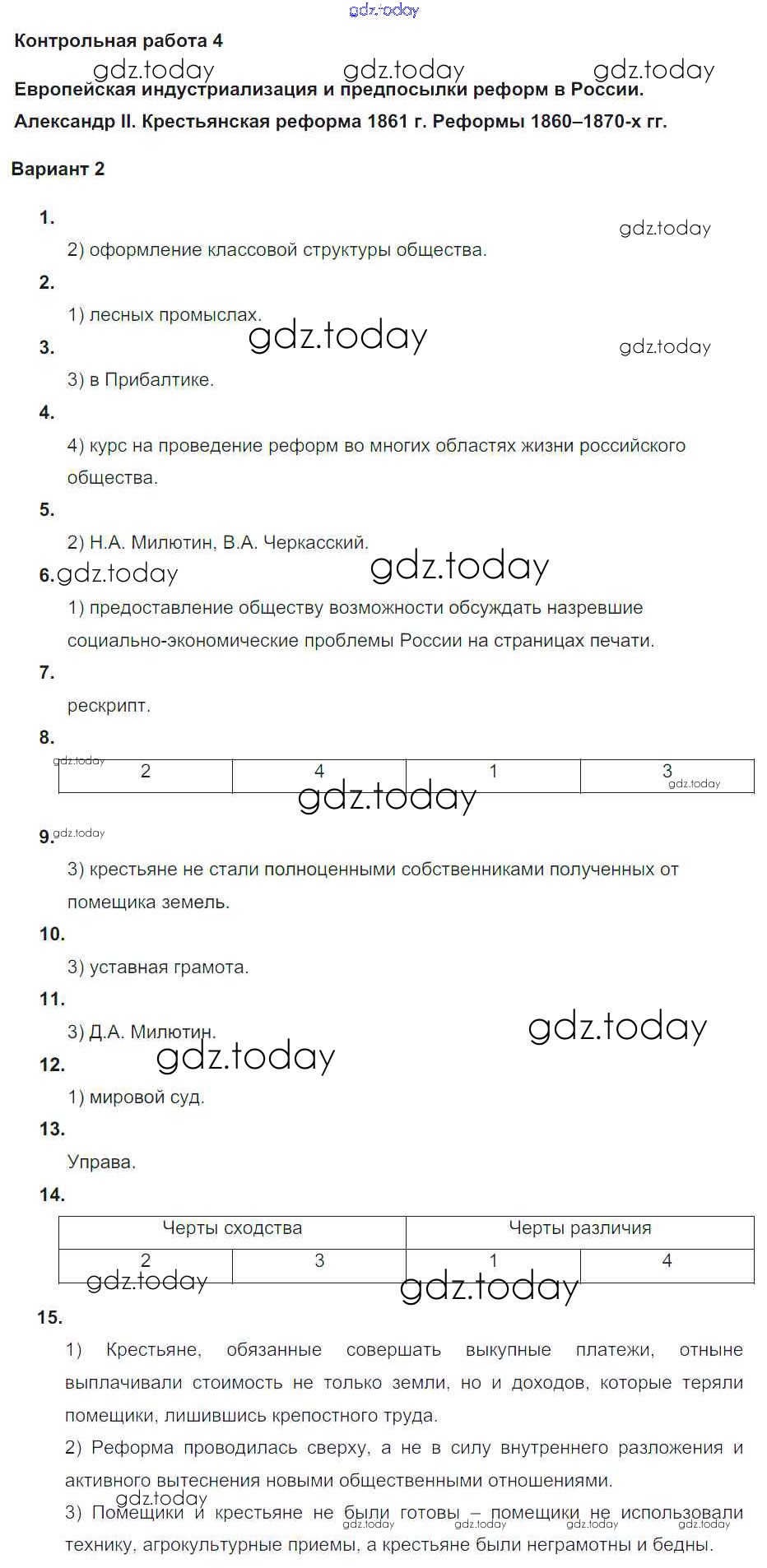 На страницах сайта gdz.today вы найдете учебный и вспомогательный материал, направленный на улучшения знаний школьной программы. ГДЗ - онлайн мир знаний Решение к контрольной работе 4. Варианты 2 Контрольным работам по Истории России для 9 класса Соловьев Экзамен УМК 2020