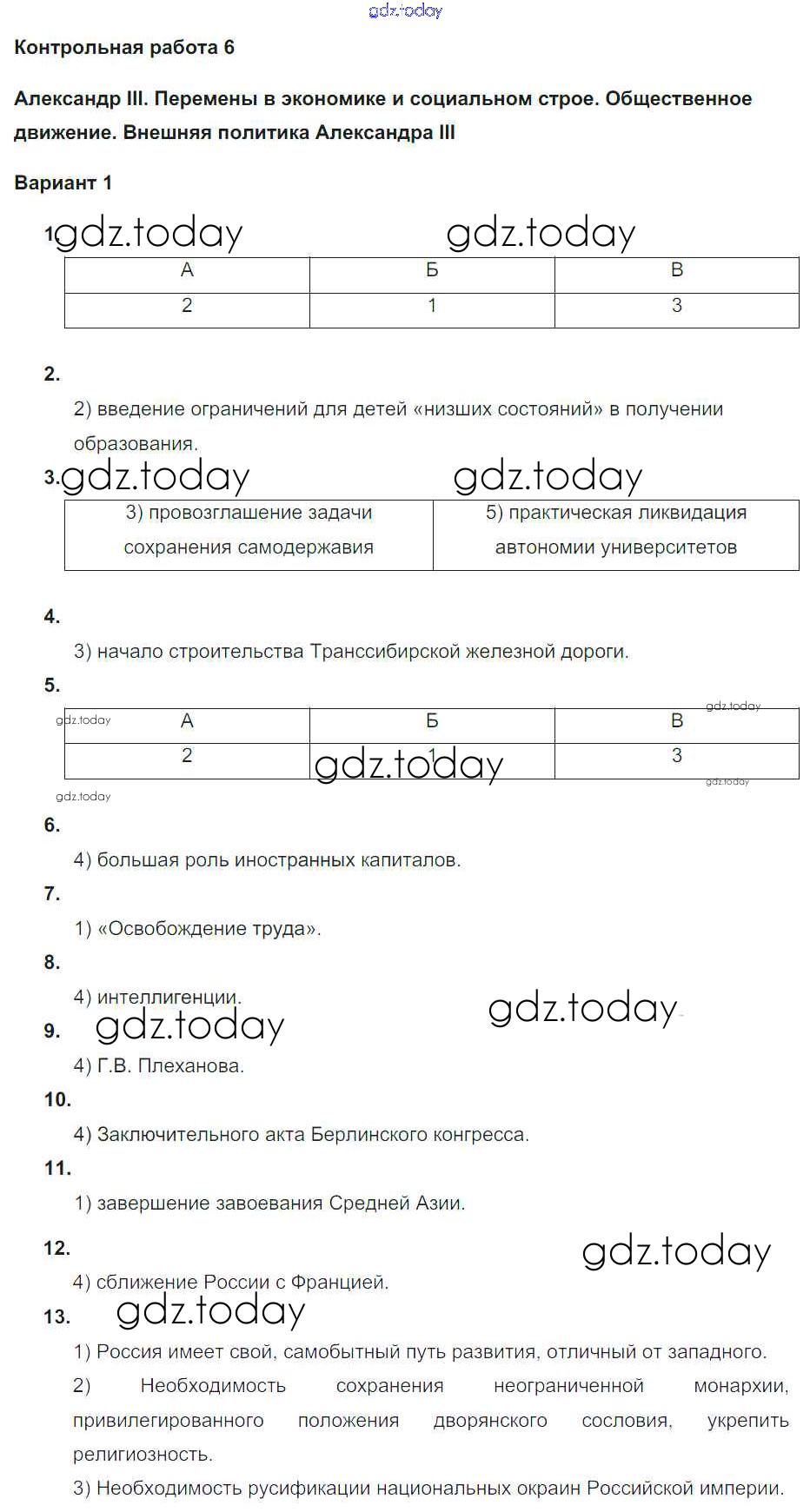 На страницах сайта gdz.today вы найдете учебный и вспомогательный материал, направленный на улучшения знаний школьной программы. ГДЗ - онлайн мир знаний Решение к контрольной работе 6. Варианты 1 Контрольным работам по Истории России для 9 класса Соловьев Экзамен УМК 2020