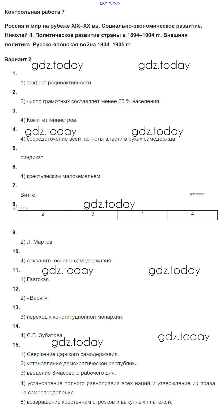 На страницах сайта gdz.today вы найдете учебный и вспомогательный материал, направленный на улучшения знаний школьной программы. ГДЗ - онлайн мир знаний Решение к контрольной работе 7. Варианты 2 Контрольным работам по Истории России для 9 класса Соловьев Экзамен УМК 2020