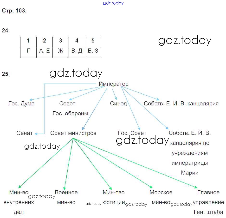 На страницах сайта gdz.today вы найдете учебный и вспомогательный материал, направленный на улучшения знаний школьной программы. ГДЗ - онлайн мир знаний Страницы (решение) 103 Рабочей тетради по Истории России для 9 класса Стаферова, Шевырев Русское слово Инновационная школа 2019