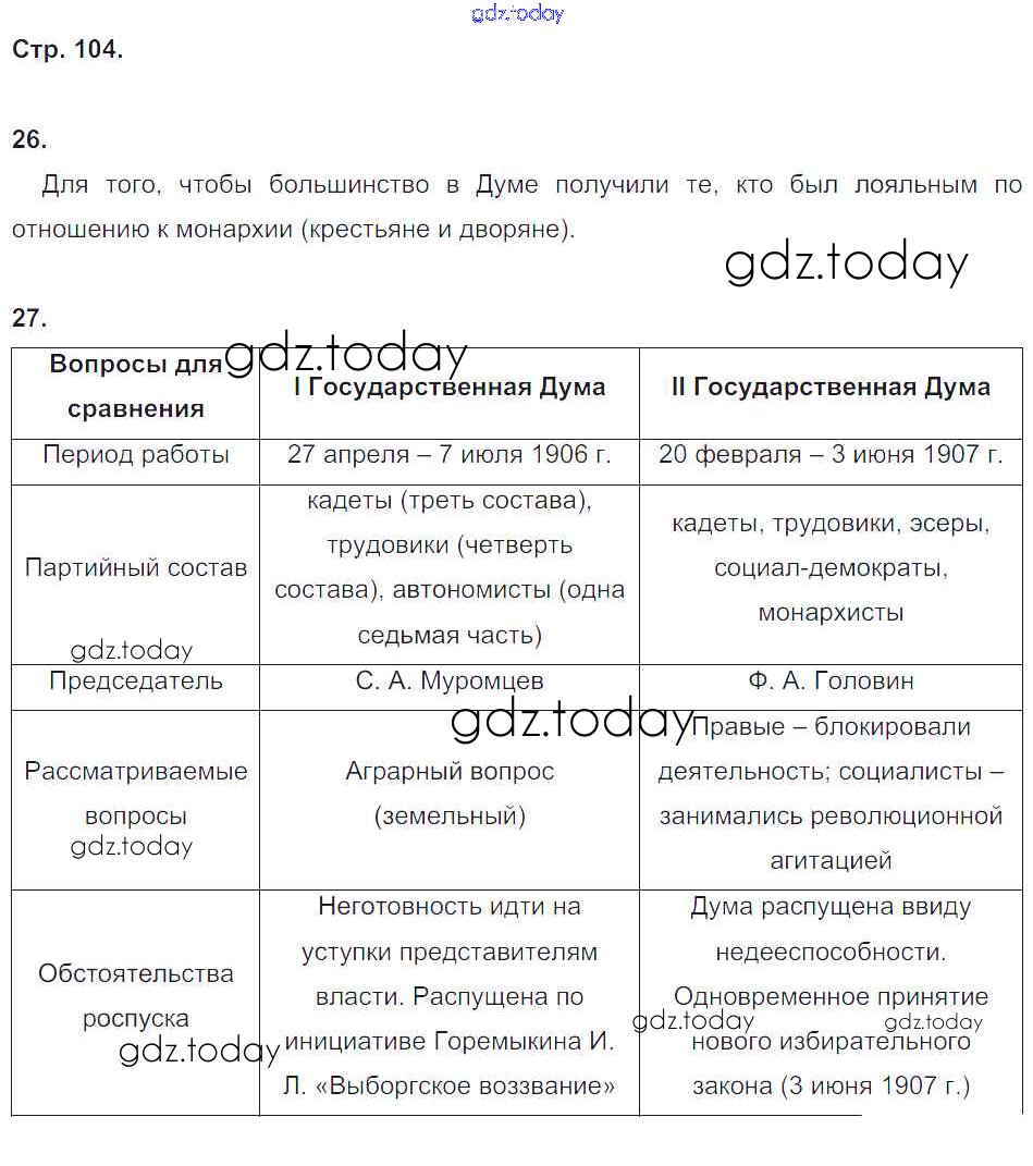 На страницах сайта gdz.today вы найдете учебный и вспомогательный материал, направленный на улучшения знаний школьной программы. ГДЗ - онлайн мир знаний Страницы (решение) 104 Рабочей тетради по Истории России для 9 класса Стаферова, Шевырев Русское слово Инновационная школа 2019