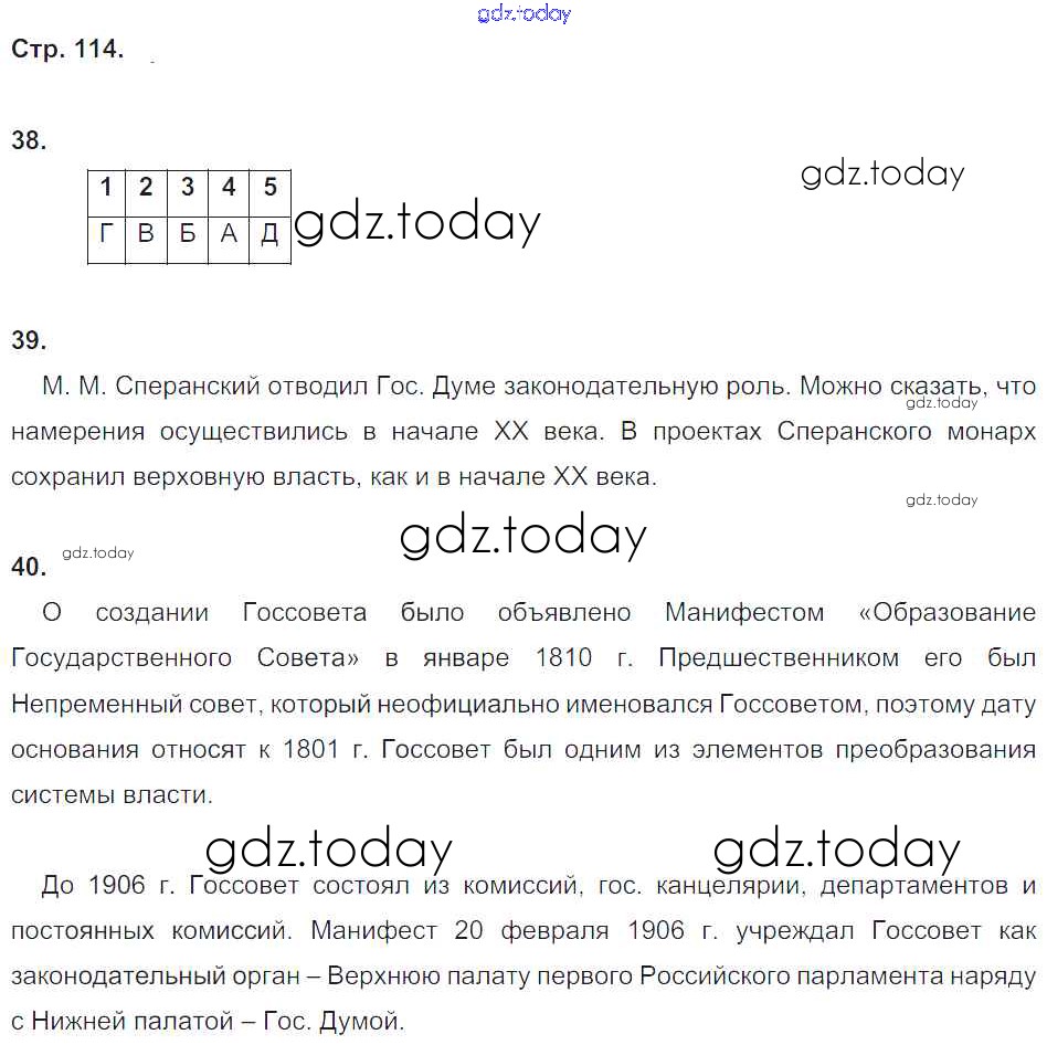 На страницах сайта gdz.today вы найдете учебный и вспомогательный материал, направленный на улучшения знаний школьной программы. ГДЗ - онлайн мир знаний Страницы (решение) 114 Рабочей тетради по Истории России для 9 класса Стаферова, Шевырев Русское слово Инновационная школа 2019