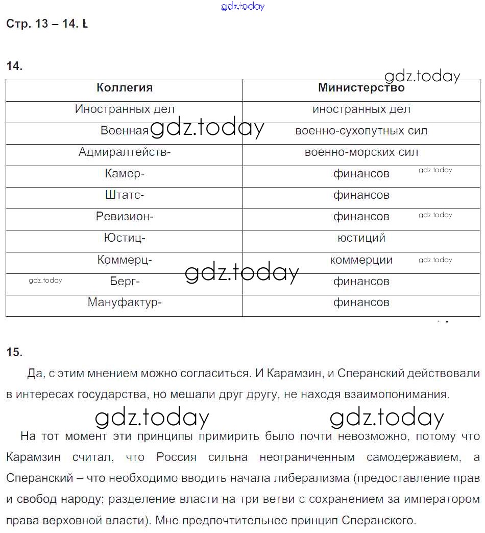На страницах сайта gdz.today вы найдете учебный и вспомогательный материал, направленный на улучшения знаний школьной программы. ГДЗ - онлайн мир знаний Страницы (решение) 14 Рабочей тетради по Истории России для 9 класса Стаферова, Шевырев Русское слово Инновационная школа 2019