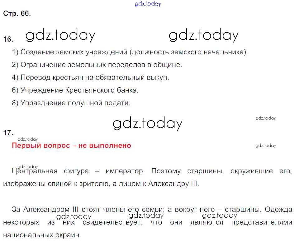 На страницах сайта gdz.today вы найдете учебный и вспомогательный материал, направленный на улучшения знаний школьной программы. ГДЗ - онлайн мир знаний Страницы (решение) 66 Рабочей тетради по Истории России для 9 класса Стаферова, Шевырев Русское слово Инновационная школа 2019