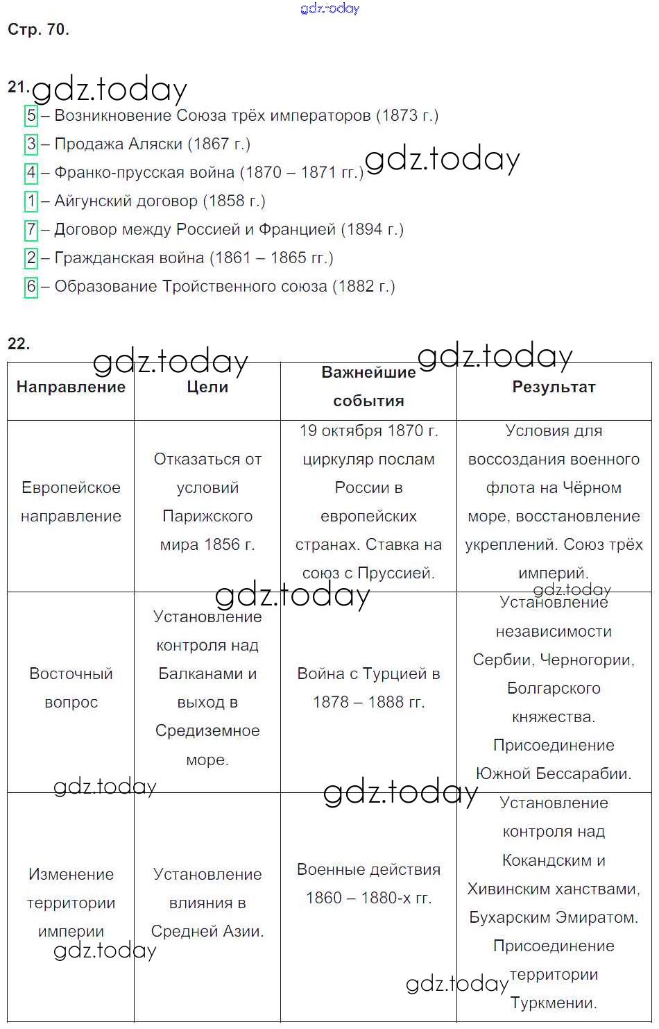 Ответы к Страницы (решение) 70 Рабочей тетради по Истории России для 9 класса Стаферова, Шевырев Русское слово Инновационная школа 2019