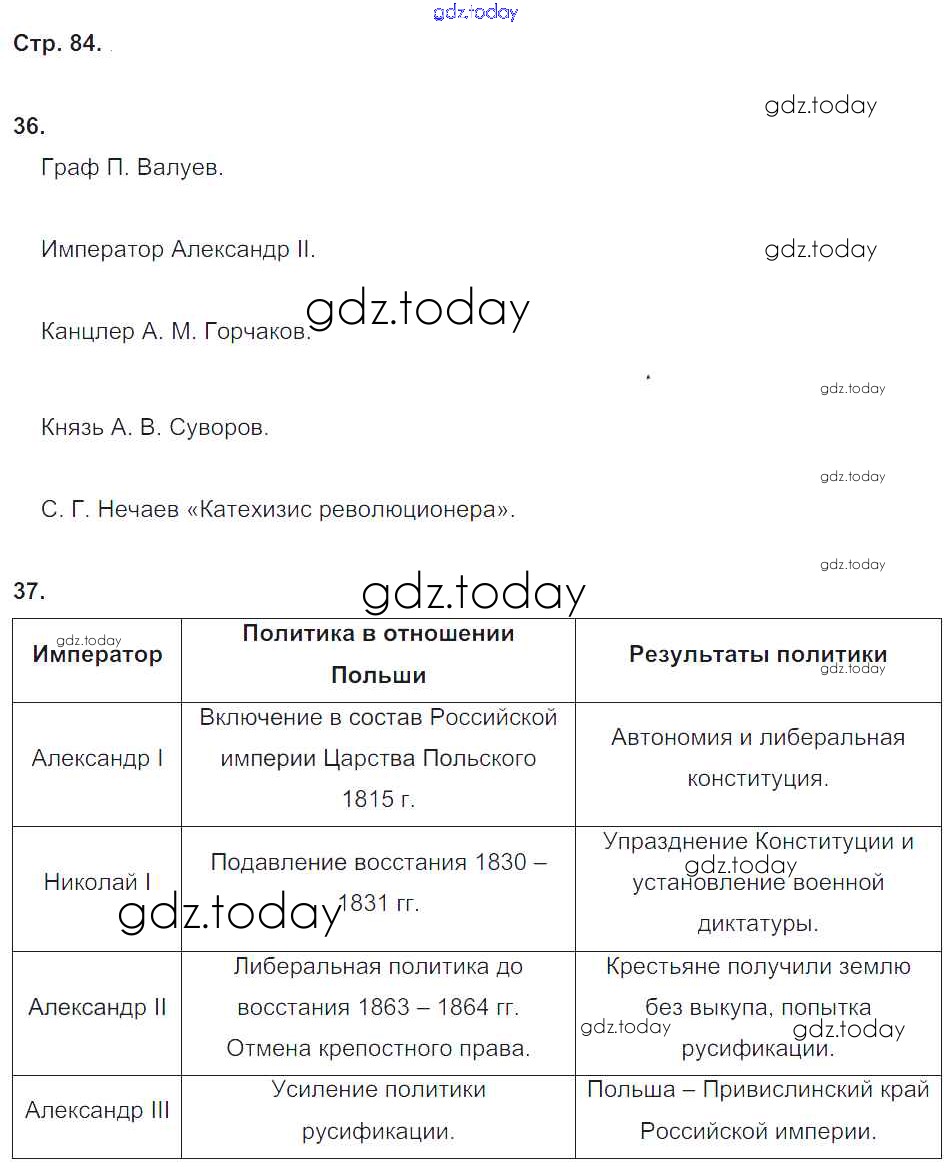 На страницах сайта gdz.today вы найдете учебный и вспомогательный материал, направленный на улучшения знаний школьной программы. ГДЗ - онлайн мир знаний Страницы (решение) 84 Рабочей тетради по Истории России для 9 класса Стаферова, Шевырев Русское слово Инновационная школа 2019