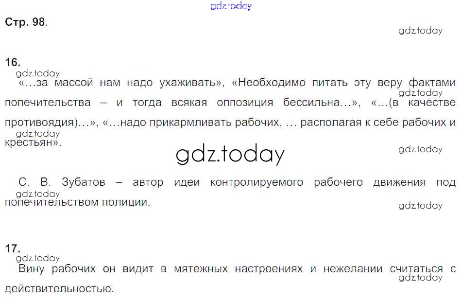 На страницах сайта gdz.today вы найдете учебный и вспомогательный материал, направленный на улучшения знаний школьной программы. ГДЗ - онлайн мир знаний Страницы (решение) 98 Рабочей тетради по Истории России для 9 класса Стаферова, Шевырев Русское слово Инновационная школа 2019