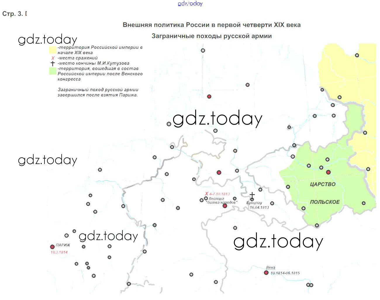 На страницах сайта gdz.today вы найдете учебный и вспомогательный материал, направленный на улучшения знаний школьной программы. ГДЗ - онлайн мир знаний Страницы (решение) 3 Контурным картам по Истории России для 9 класса Тороп Просвещение УМК 2018