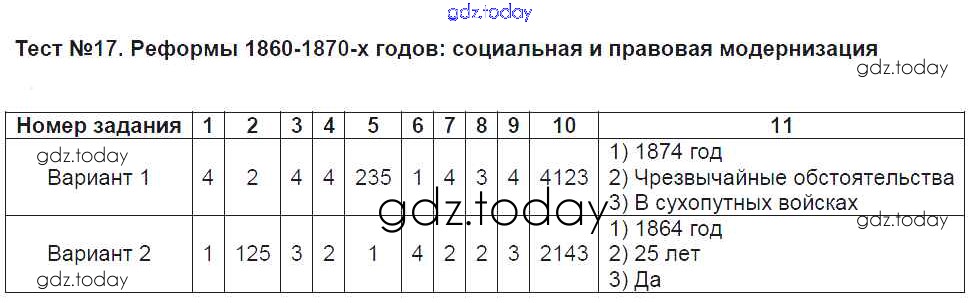 На страницах сайта gdz.today вы найдете учебный и вспомогательный материал, направленный на улучшения знаний школьной программы. ГДЗ - онлайн мир знаний Решение к части 1. Тесты 17 Тестам по Истории России для 9 класса Воробьёва Экзамен УМК 2019