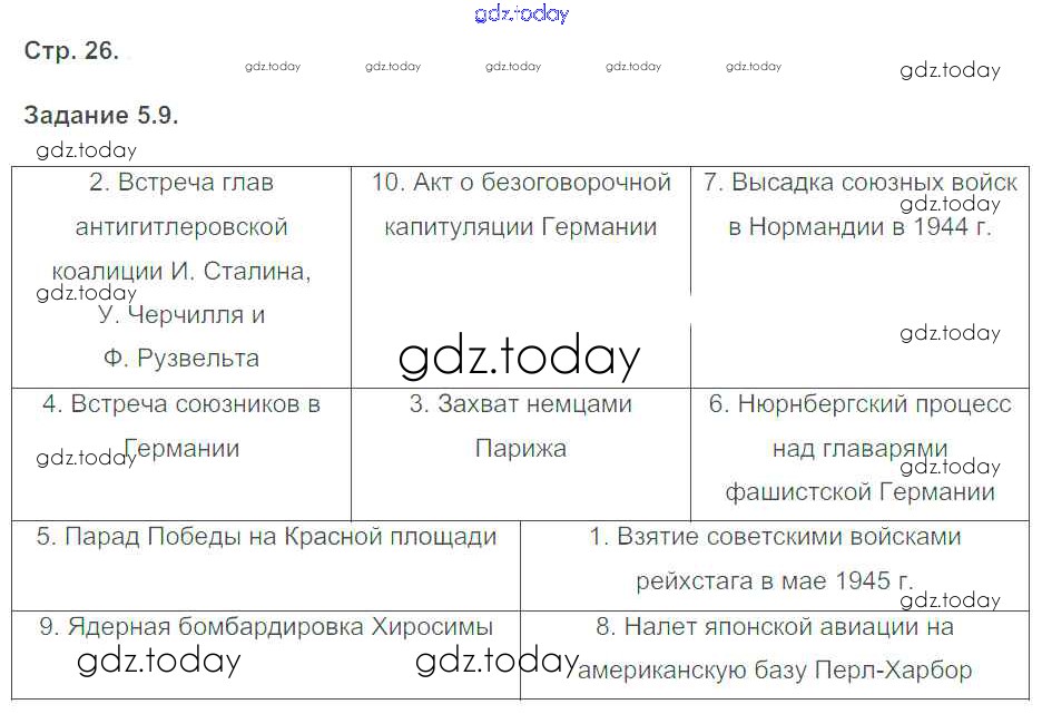 На страницах сайта gdz.today вы найдете учебный и вспомогательный материал, направленный на улучшения знаний школьной программы. ГДЗ - онлайн мир знаний Страницы (решение) 26 Рабочей тетради по Истории для 9 класса Пономарев Экзамен УМК 2016