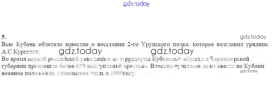 На страницах сайта gdz.today вы найдете учебный и вспомогательный материал, направленный на улучшения знаний школьной программы. ГДЗ - онлайн мир знаний Решение к теме 6. Кубанская область и Черноморская губерния в 1900—1916 годах 5 Рабочей тетради по Кубановедению для 9 класса Лунева Перспективы образования 2018