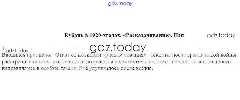 На страницах сайта gdz.today вы найдете учебный и вспомогательный материал, направленный на улучшения знаний школьной программы. ГДЗ - онлайн мир знаний Решение к теме 11. Кубань в 1920-хгодах. «Расказачивание». Нэп 1 Рабочей тетради по Кубановедению для 9 класса Лунева Перспективы образования 2018