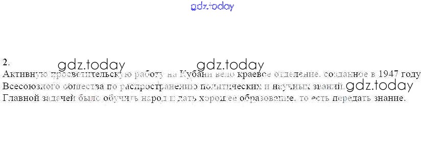 На страницах сайта gdz.today вы найдете учебный и вспомогательный материал, направленный на улучшения знаний школьной программы. ГДЗ - онлайн мир знаний Решение к теме 19. Культура в послевоенный период 2 Рабочей тетради по Кубановедению для 9 класса Лунева Перспективы образования 2018