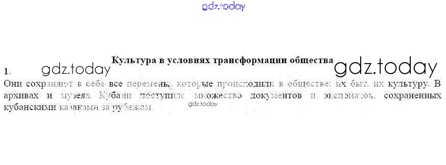 На страницах сайта gdz.today вы найдете учебный и вспомогательный материал, направленный на улучшения знаний школьной программы. ГДЗ - онлайн мир знаний Решение к теме 26. Культура в условиях трансформации общества 1 Рабочей тетради по Кубановедению для 9 класса Лунева Перспективы образования 2018