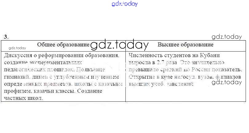 На страницах сайта gdz.today вы найдете учебный и вспомогательный материал, направленный на улучшения знаний школьной программы. ГДЗ - онлайн мир знаний Решение к теме 26. Культура в условиях трансформации общества 3 Рабочей тетради по Кубановедению для 9 класса Лунева Перспективы образования 2018
