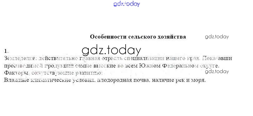 На страницах сайта gdz.today вы найдете учебный и вспомогательный материал, направленный на улучшения знаний школьной программы. ГДЗ - онлайн мир знаний Решение к теме 30. Особенности сельского хозяйства 1 Рабочей тетради по Кубановедению для 9 класса Лунева Перспективы образования 2018