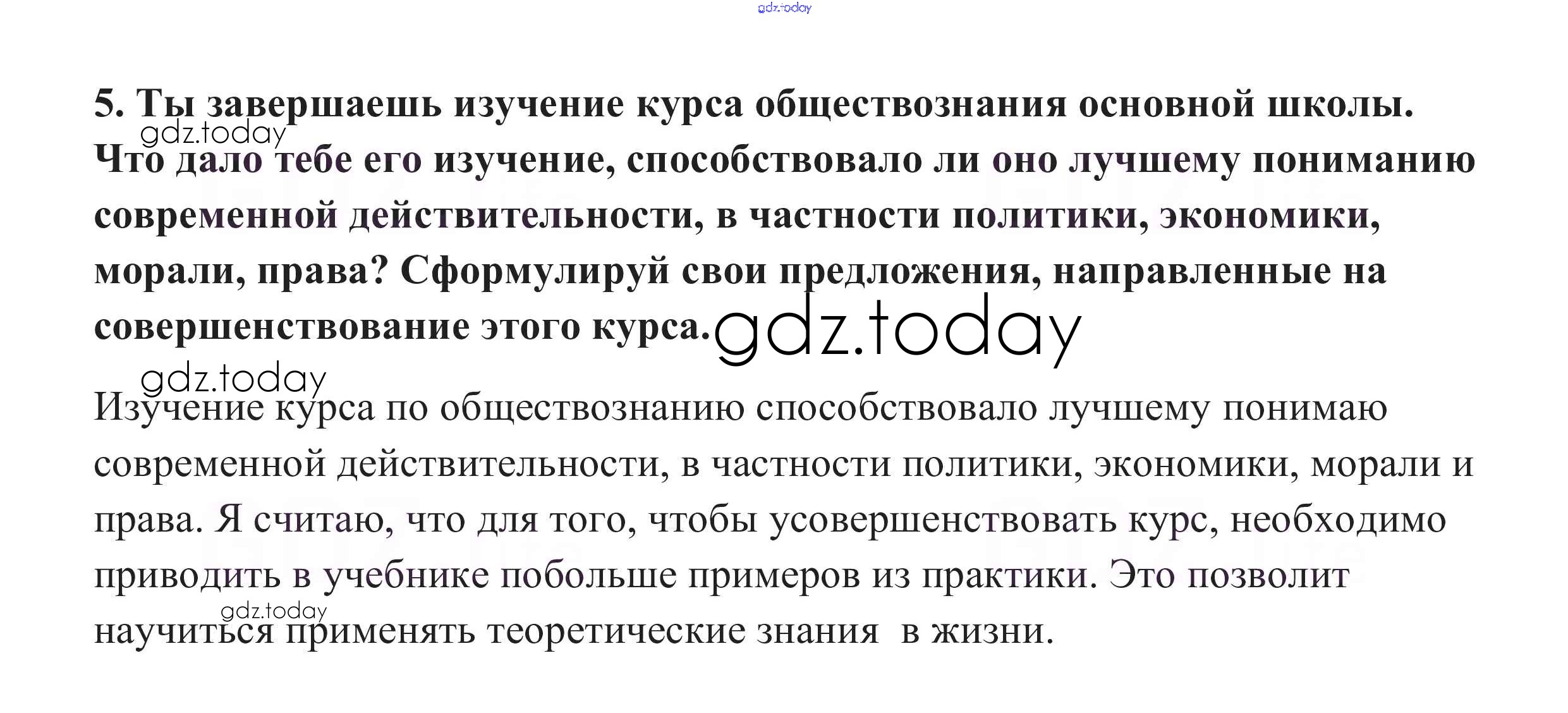 На страницах сайта gdz.today вы найдете учебный и вспомогательный материал, направленный на улучшения знаний школьной программы. ГДЗ - онлайн мир знаний В классе и дома Решение к § 23 5 Учебнику по Обществознанию для 9 класса Боголюбов, Матвеев Просвещение УМК 2014