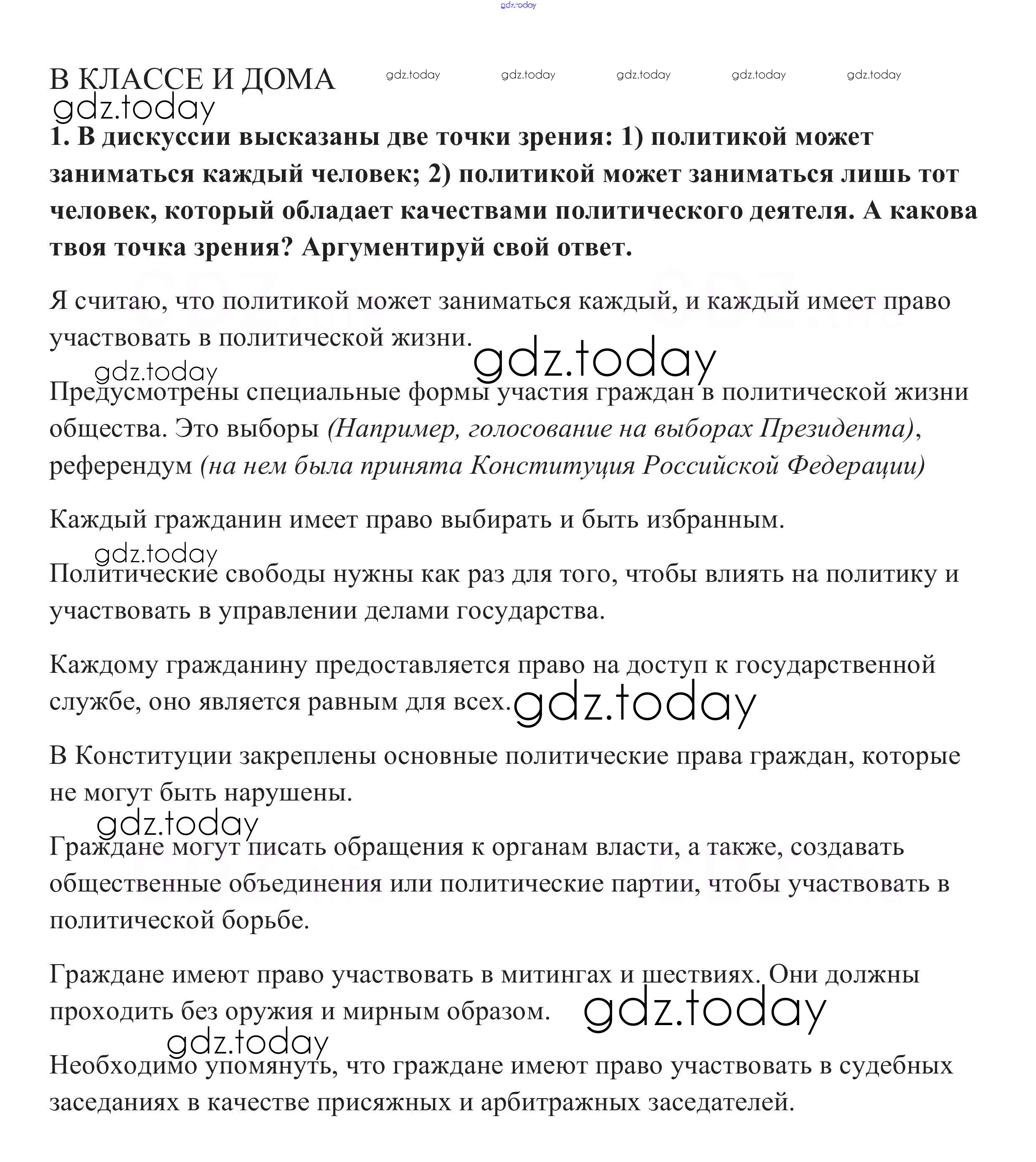 Ответы к В классе и дома Решение к § 6 1 Учебнику по Обществознанию для 9 класса Боголюбов, Матвеев Просвещение УМК 2014